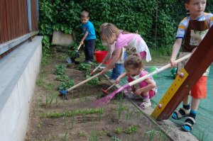 A limonádé szürcsölgetésére a biokertben elvégzett kemény munkák után került sor. A kis kertészek ástak, locsoltak, kapáltak, mentát és citromfüvet ültettek és limonádéval felfrissültek…