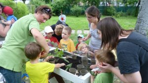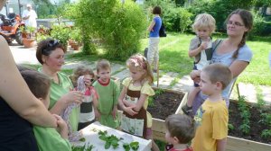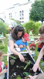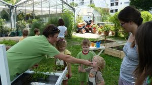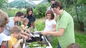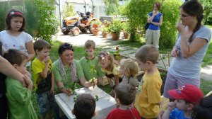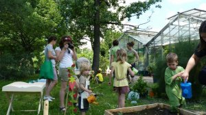 A Füvészkertben tartott bemutató foglalkozásunkon mindhárom, kánikulában nélkülözhetetlen dolog adott volt. (habár szerencsére még a nagyon nagy meleg előtt, június 15.-én tartottuk)A biokertünk magasított ágyásai egy hatalmas nyárfa szomszédságában kaptak helyet. Míg az ágyásokba beültetett paradicsomok déltől napoznak, a délelőtti foglalkozáson a kis kertészek élvezhették a nyárfa hűsítő árnyékát.
