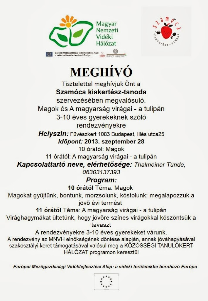 Jegyet a foglalkozás helyszínén a Szamóca kiskertész-tanodánál lehet váltani.