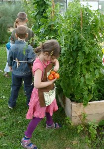 Kis kertészek ültették, locsolták, gyomlálták, karózták, szüretelték és elfogyasztották, és ez még csak a kezdet. Jövő heti foglalkozásunkra is pirosodnak paradicsomok, nőnek még uborkák és reméljük majd jövőre megismételjük…