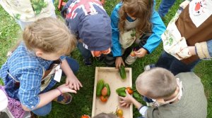 Ez az első szüret a Szamóca kiskertész tanodában a Füvészkertben, ami teljes mértékben a gyerekek munkájának eredménye.