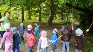 Az óvodások kaptak pár bambuszkarót és azokkal megverték a diófa alsó ágait, hogy érzékeljék, hogy hogyan is zajlik a dióverés. A bambuszkarókat hamar visszagyűjtöttük, mert veszélyes szerszámnak bizonyultak a kis kertészek kezében. Nem a diófára leselkedett ez a veszély, mert ágait alig érték el, hanem saját testi épségükre.