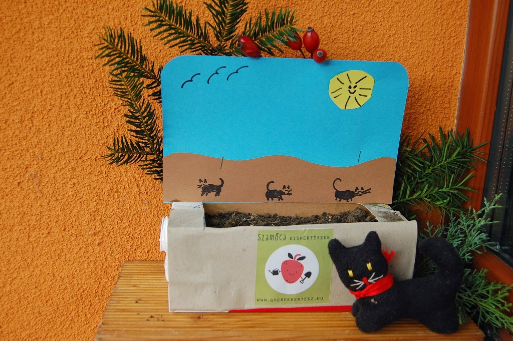 A tojástartót megtöltöttem földdel, rászórtam a fűmagot és óvatosan belocsoltam. Az ablakpárkányon 5 nap múlva kihajtott a fű.