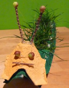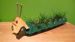 A klasszikusnak számító fűfejet kicsit megvariáltam, tojástartó újrahasznosítással kereszteztem és így született a százlábú: