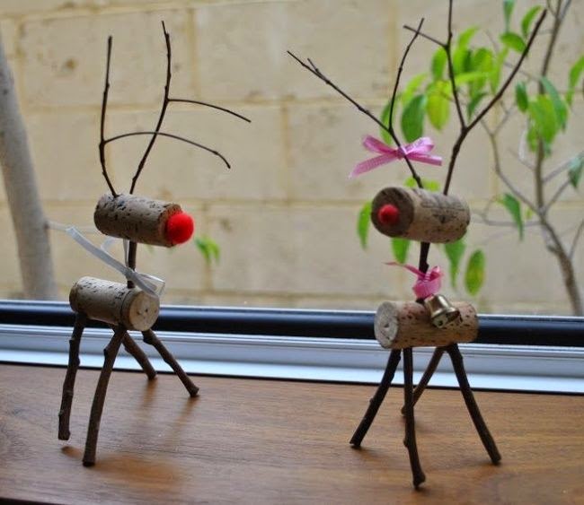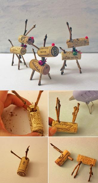 A rénszarvas teste és feje is készülhet parafadugóból. Agancsa és a lába a kirándulások alkalmával begyűjtött ágacskákból készülhet. Orra stílusosan legyen piros, egy piros bogyó pont megfelel, de szúrhattok bele akár egy piros gombostűt is.